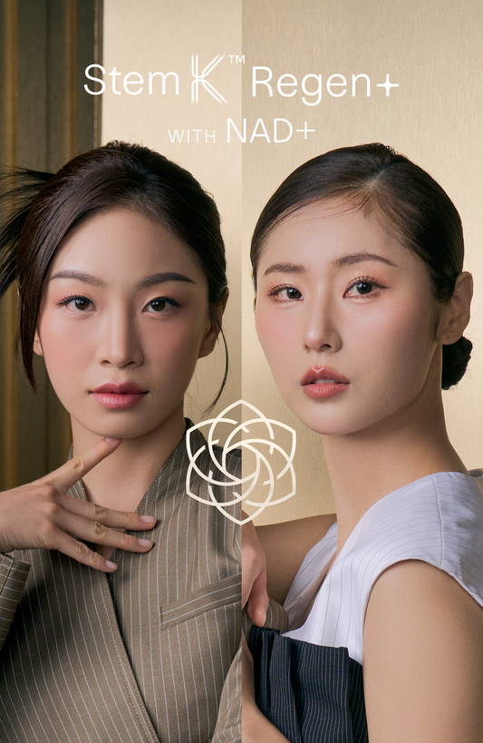 Stem-K Regen+ with NAD+ is a plant-based stem cell facial that combines Korean CryoTherma-X Lift technology with NAD+ to repair and rejuvenate aging skin. It revitalizes the skin at a cellular level, replenishing lost NAD+ to address deeper concerns like sagging skin, fine lines, and large pores without the need for needles.