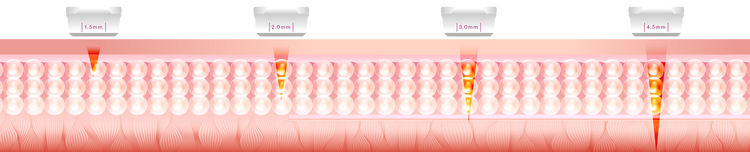 The Micro-Macro Focused Ultrasound (MMFU) technology emits waves with thermal energy of 60-70ºC, that are able to safely penetrate the SMAS layer of your skin to restore elasticity.