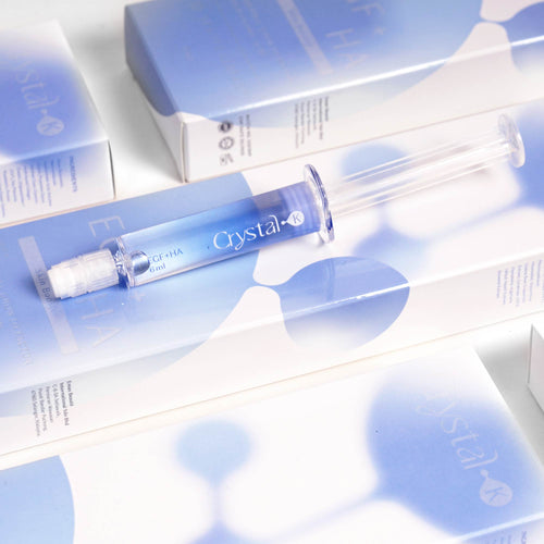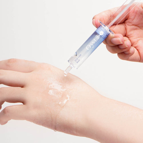 Stimulating the collagen and elastin production in your skin, our Crystal K EGF+HA Skin Booster serum stands out by using the simplest ingredients to give you the best visible results.