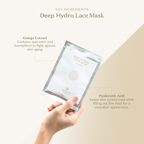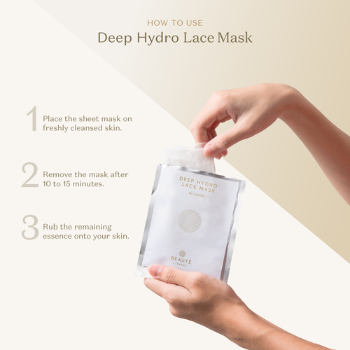 A refreshing layer of hydration finely draped over the contours of your face, Beaute Library's Deep Hydro Lace Mask is a sheet mask unlike any other. Developed to create the best possible fit onto the skin, each mask contains a Hyaluronic Acid-rich serum that quenches your skin in under 15-minutes.